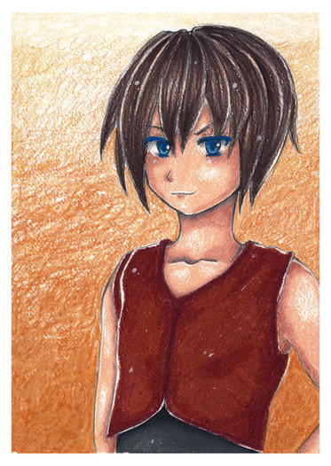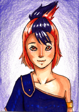 Wygląda na zimną babę, ale sympatyczną. Kolorowanie jest świetne- wyraziste, ale stonowane. Melancholijne spojrzenie i dopatrzyłam się tylko jednego babola- prawe ramię jest ciutkę za grubę. Ale to tylko szczegół, nie burzy całości.