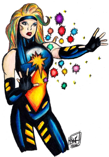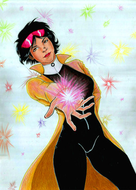 I did the lineart in pencil and ink, then scanned and colored it in photshop. This is a commission for a girl from the comic con, who wanted a picture of Jubilee. this is her costume from Legends, more or less. I'm pretty pleased with it, and I like the fireworks.Related content
