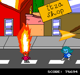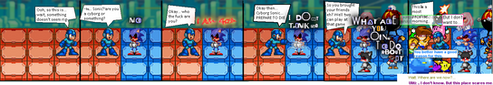 So I find the create-a-custom-character code in River City Ransom EX, and I figure, what the heck -- I'll make a character to look like me. Then I figure, what the heck -- I'll make a character to look like Zero. Only none of the hairstyles available quite fit his caricature. Then I figure, what the heck -- there are lots of sprites that could easily be edited, so I decide to make a comic. Who knows, maybe this'll actually go somewhere. So anyway, while I wait for an opportunity to get Zero to design his own character in the creator, I put this together.Related content