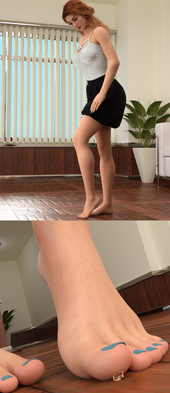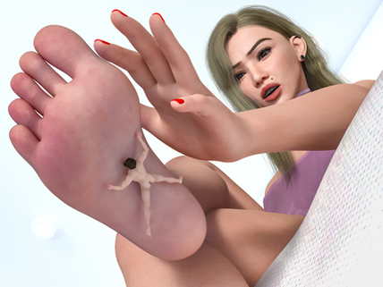 "Are those tinies on my floor? Don't even think about trying to run. I'd rather not bloody my carpet." Renee sat down on the carpet in front of the two terrified tinies. She planted her heels in front of them and leaned forward onto her knees expectantly. Her toes wiggled back and forth above their heads tauntingly. "Do you really need me to spell it out for you or do you just want to get crushed? Lick them, kiss them, massage them, whatever; just worship them. It's all you pathetic bugs are good for." The two tinies hesitantly walked forward and started to do as she told. They pushed through the overwhelming stench to her soles. They were soft, warm, and covered in residue from a slightly sweet smelling lotion. Their mouths filled with sweat and dirt as their hands massaged her feet. "Come on, I can barely feel you down there. Maybe you just need some encouragement." Renee slowly lowered her left foot and the tiny under it scrambled backwards. He got as far as the ball of her foot before it smothered him. The air was entirely replaced with the stench of her foot which pressed into his tiny body slowly. "Lick it as if your life depends on it, because it does. If you're good I might let you out." She threatened. Renee never really intended to kill him, she was enjoying this far too much. She loved feeling like a goddess with subjects that were helpless against her so whenever she found tinies they became her slaves for days or even weeks. Every once in a while she'd lift her foot and lower her other one, playing with the tinies by slowly crushing their spirits and bodies underfoot.available in 4k on patreon