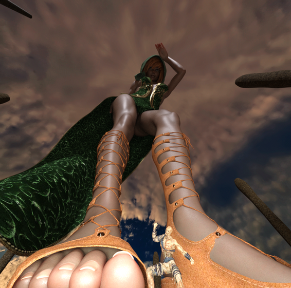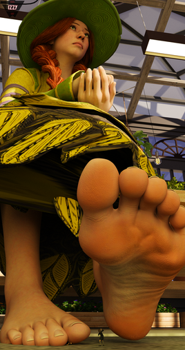 You woke up naked on a cold wood floor. The last thing you could remember was drinking at the tavern with a cute girl. You must have drunk far too much. Finally standing up you tried to get your bearings. There was a chair in front of you but it looked several stories tall. Ok you must have just drunk something really strong. You went to find a bed to sleep it off and found one right behind you but, like the chair it was taller than a building. Suddenly you heard the voice of the girl from the tavern. "Oh you're up. I know what you're thinking. No, you did not sleep with me; Yes, I shrank you; Yes, I'm a witch. Any other questions?" You looked up and found her looming over you. She sat down in the chair and picked you up between her fingers. She grabbed a stocking from next to her in her other hand and you soon found yourself falling into it. The stench was overpowering, sweat and dirt with a hint of something sweet. It closed in all around you as you tried to frantically climb the sides of her massive stocking. Her foot blocked out the light coming from the hole and started to press in towards you. "If it wasn't clear already you're here to be my new insole. Pathetic adventurers like you are my favorite, something about the look on your face when you realize that cute girl was the one with the real power." Her purple painted toes brushed you off the side of the stocking and into the sole. The rest of her foot pressed into the sole and shoved you to the front, trapped under the ball of her foot, with your head between her toes, just enough to look up at her through the fabric. The stench was bad before but, now it was infinitely worse. The sweat smeared onto your naked body and into your face, her scent alone was powerful enough to make you lightheaded. "Do try to last a while. As much as I enjoy shrinking adventurers, shrinking potion is a pain to brew and it's annoying to clean your guts out of my stockings." She squeezed and wiggled her toes, playing with you and stretching your body painfully. She turned away to put on her other stocking, still playing with you, and stood up when she finished. Your body flared with pain under her foot but didn't break like you expected it to. "That shrinking potion should give you some extra durability, I can even do this to you." She put all her weight onto one leg and started to grind her foot back and forth on top of you. You felt your body bend in all sort of ways it shouldn't but still it held, no more than a few broken bones from the weight of a small mountain on top of you. "Now it's time to go back out. I need an insole for my other foot." A boot smothered out what little light there was inside the fabric, leaving you trapped in darkness with just her toes and the pain of each step for company.available in 4k on patreon