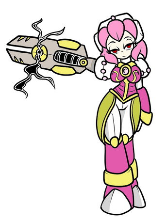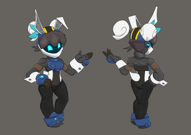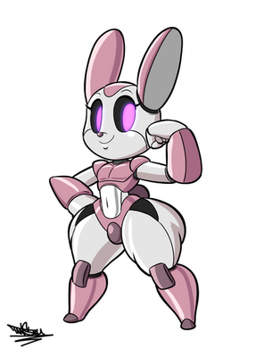 in retaliation for something a rival scientist transformed Cyrious into a robo bunny babe made to serve her ower in every way.she also has a cocktail mixing arm so that helps