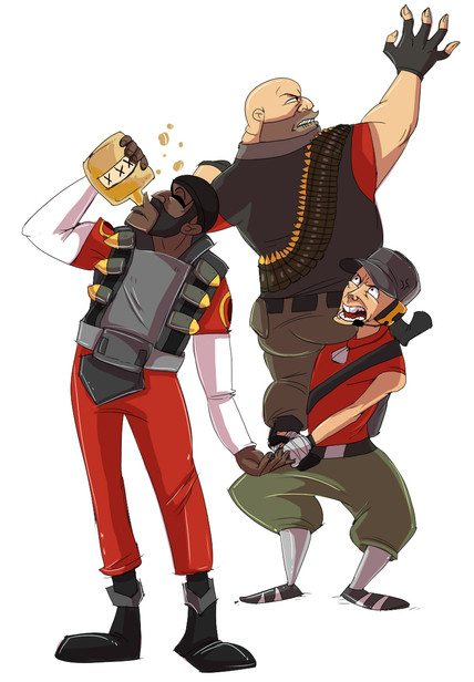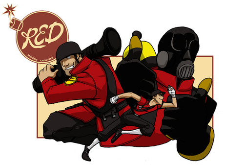 I loved the Soldier Demo War. I'm glad it was sort of a tie with the rewards, killing, I think soldier was mostly on that one, it's been awhile. Nice picture. I'd wish they'd do an Engi and Spy or Pyro and Spy. Something me and my friends can get into over. Since he plays both out of Spy and Pyro and I play Spy. Still, nice picture, really represents the entire demo/soldier war.
