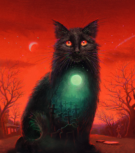 #artwork #black #cat #kitty #monnlight #night #red #sahdow #water #art #painting #reflection