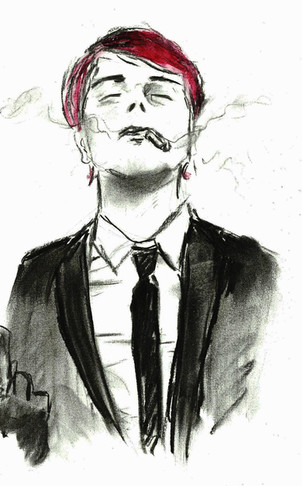 i saw gerard live a few weeks ago and outside the venue they were selling t shirts with this drawing. idk i got one but now i feel kinda bad cause i doubt they had your permission. so i'm sorry i guess Β ??? but i think this is amazing and i couldn't help it Β ?????? you should sell t shirts with this design too tbh i love it!Β