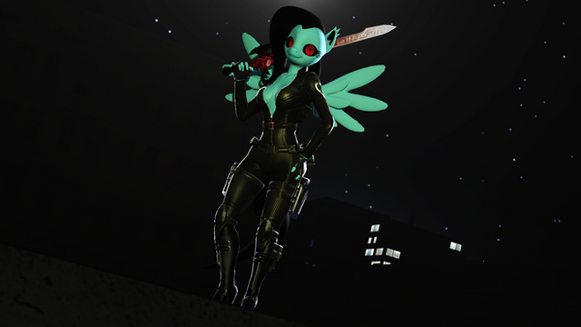 This is what happens when I think about about a 4 armed, sword wielding, cyborg, ninja, stripper mercenary!Made in SFM, edited in Paint.Net.