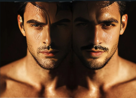 This guy is CUTE and I love the photography, very cool. I like how the woman is only in one reflection!