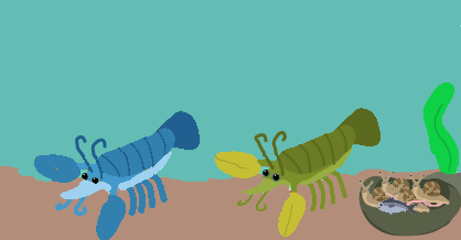 The Opabinia swims above the Hallucigenia, and then dives back down, its "mouth" ready to grasp the ancient worm's head. It locks on before the Hallucigenia can engage its defense mechanism - rolling up like an armadillo, its back spines pointing out in every direction, making it immune to attack. The mouth grabs hold of the Hallucigenia, and purple blood quickly flows out, dissipating in the water as it slowly drifts from the dying worm. Its chances of survival are low to none, and today, the Opabinia will most likely sit itself down to a nice panarthropod lunch.