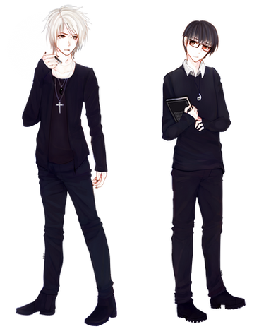 As for the characters, Tamaki and Kyoya are pretty much the only characters I like from Host Club. I tried to give them distinctive facial features - Kyoya is supposed to look Asian while Tamaki has more of a European flair lol XD It's also the first time I worked with more realistic proportions; that explains the severe modding of the shobo13 base. The white was reeallly hard to do because I was really working with neon blue and it was just very off-putting. Tamaki's wearing an outfit I put together from several of his pictures and Kyoya's wearing his track jacket from the back of volume 1. He looks like a potential POT recruit -3-)