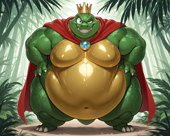 #furry #anthro #bhm #crocodile #donkeykong #fat #fatfur #hugebelly #kremling #male #nintendo #obese #scalie #kingkrool #ssbhm #hugethighs #furryai #aifurry #hugemoobs #stablediffusion #furryaiart