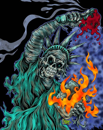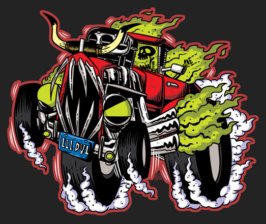 Quick color job on the old reaper. I always have a problem w/ the category. I guess it's a colored drawing of a horror related theme. But, I colored the hand done lines in photoshop. So, it's really a little bit traditional and a little bit digital, I guess...Anyway, I hope you dig the new gussied up version. Ride on...