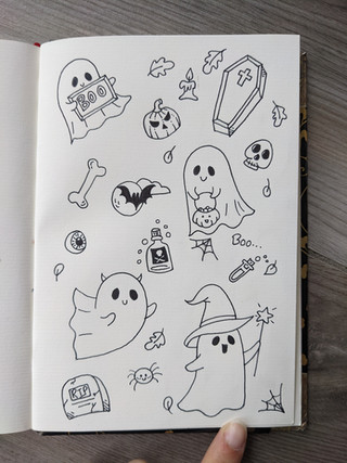 #copicmarker #fantasy #ghost #potion #pumpkin #robot #sketchbookpage #spooky #sticker #traditional #traditionalart #props #stickerdesign