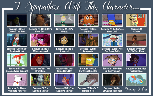 Because They're The Best: 1985!Jerry Dandrige (Fright Night). There is a tragic backstory behind this character and that backstory is that he lost his one true love, who resembles Amy Peterson..which is why in the scene where he seduces her he says that she reminds him of someone he knew a long time ago. It's the reason why Jerry turns Amy in the first place.Because He Suffers From Loss: Bojack (Bojack Horseman). Bojack has lost his father AND his mother and also he lost someone very dear to him, it seems that he never seems to ever be able to keep someone for long and even though his parents weren't much to be desired - his mother Beatrice had a tragic childhood.