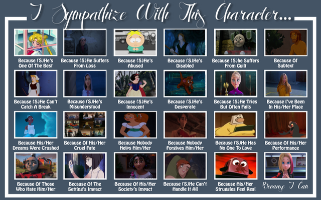 Because Of People Who Hate Her: Dawn Bellwether (Zootopia). Dawn often gets looked down upon as a villain because to some she doesn't come across as anything but a power-mad diva (heck TVTropes has a trope known as The Napoleon applied to her. Even though a typical Napoleon type is a short character who is either greedy/cruel or has an attitude problem) and the fact that she's a 'twist villain', and at the very worst there's comparisons to serial killers like Charles Manson and also ISIS and even Donald Trump. I don't see Dawn as any of those, because to me there is a tragic and redeemable side to her that could be explored in a spin-off or origin story, and there are fan-art pics that portray her in a good light (including some of my own) and she is definitely a villain I feel could use with an in-depth backstory on.