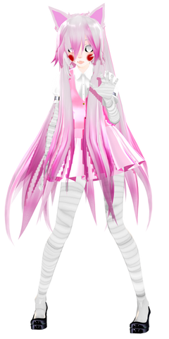 His legs shifted to become shapely as his feet shifted and his rear inflated, his privates retracted but he didn’t mind this, as he grew a little bit taller in height while his back arched and his shoulders shrank inward. His ears shifted to become fox-like, with white fur and pink insides as pink colorations popped up on his face, while his hair darkened, turning from brown to jet black. Red blush was applied on his cheeks as purplish-pink eye makeup was applied around his eyes which also turned yellow as eyelashes blossomed forth around them.