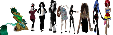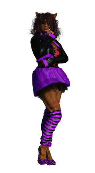 Mel's Mask form in her four main outfits - the first one is the wrestler, the second is the 'mother', the third is the seductress or the 'I can be anything you want me to, baby' one and the fourth one is the main one. The fourth one is supposed to be a LOT shapelier and bustier too. In masked form, Mel is wacky, energetic and cartoony as opposed to her shy and naive normal self and is full of jokes and one-liners and she is also a bit of a flirt when in this form too. And also it is implied that in some cases she doesn't need to wear the mask to become her.The mask itself was given to her in a piece of fan-mail that one of her fans sent her prior to the events of the evil Lithius incident.