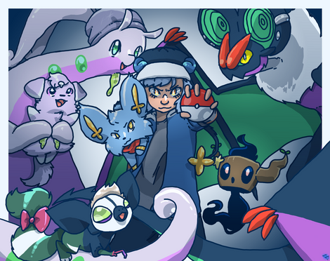 A really messy drawing I did of a team of Pokémon that I think fits the theme of a hacker, with Ghost and Steel typings. You may recall a certain drawing I did ages ago that looked similar to this and had a similar cast of Pokémon if you’re here since the start… and well, it was kind of a do over but I guess this is, in a way somewhat worse than the inspiration.Pokémon © Nintendo, Game Freak.