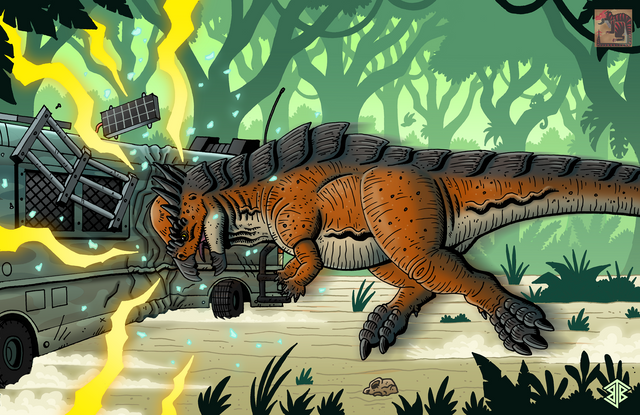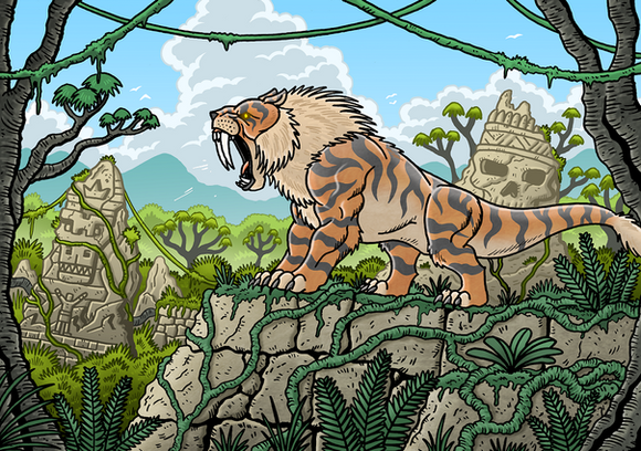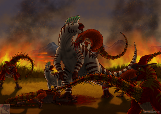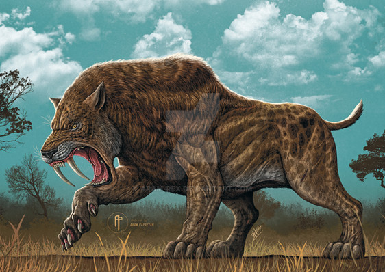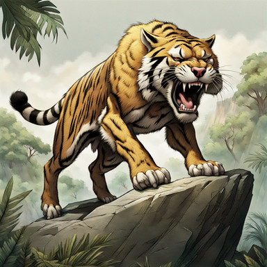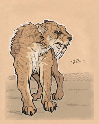 Pyrodons are large feline like creatures that resemble a tiger, with lion like features. These beasts are more larger than any big cats that onced lived on earth. They also a pair of long saber teeth, used to bring down large herbivores. Pyrodons are solitary hunters, they only come together to mate. Its stripe patterns on its body helps the Pyrodon blend with its environment, sneaking up on unsuspected prey, using its short bursts of speed and incredible strength to bring down its opponent. Thanks to their ability to use fire, they are the true kings of jungle.