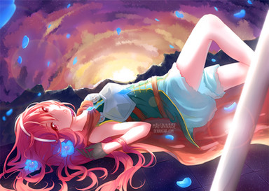 Back in 2012, I, for the first time in my life, played my first ever mmorpg game, which was a game called LaTale. I had many great memories about the game and the people that I've met, so this game is very nostalgic to me. Whenever you'd transport from one location to another, there'd be loading screens, and let me tell you; those loading screens, the illustrations that covered it were absolutelyyyyyyy stunning! They were very inspirational into motivating me to make art as a child, so it has a very special place in my heart. The main goal of the story is to find this person, named Iris Livier, who became lost into the rips of time and space. One of her friends were you, the player. Apparently, currently in the story progression, the game's at the point where you, Iris's friend, finds Iris and reunites with her. Now'a days, I unfortunately do not have the time to invest a lot of effort to progress that far into that point of the story. And so, I simply imagined how it would've been like if I were to have found Iris in the story. Personally, I really liked her as a child, I suppose she was my waifu of sorts back then.. I just didn't realise at the time, haha. I've made the setting of the illustration take place in El Anoir Plains East. The main reason why I chose that location is because: A) I really liked the aesthetics surrounding that location. B) the bgm in there is really nice.