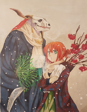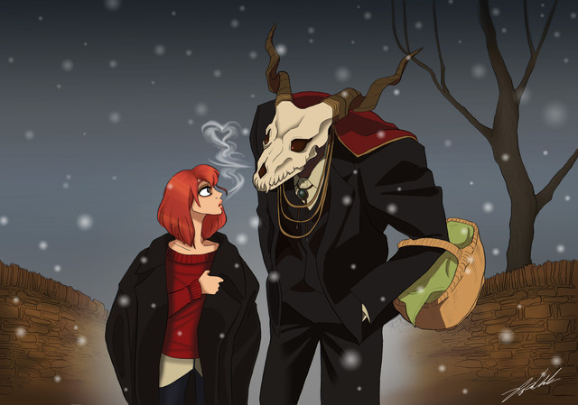 #acuarela #ainsworth #anime #chise #couple #date #elias #hatori #illustration #mage #magic #manga #mony #redhair #snow #watercolor #watercolour #winter #monyta #mahoutsukainoyome #theancientmagusbride #eliasainsworth #hatorichise #romance #winterclothing