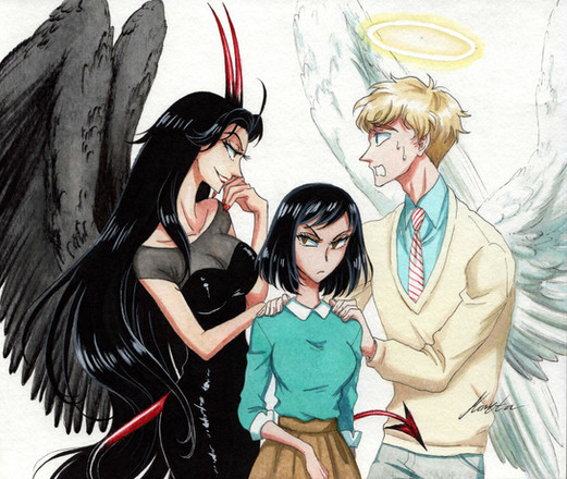 Man, drawing Elias head is not too easy but I think I managed. This is a random scenario where they go on a date in the snow, it was kind of nice to draw this since it's been sooo freaking hot here in Australia, I think I'm gonna die...Anyway, I'm happy of how Elias' coat turned out, I find it hard to accomplish dark colours like that one with watercolours but I'm pleased, that's the colour I wanted Also I loved drawing his horns so much! how bizarre.