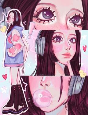 it has been a while since i drew something proprely. i haven't tell y'all but around the beginning of september, i accidently broke my right hand middle-finger during sport class. then I had to wear a splint for 10 days during which I tried to draw but uh... yea 💀 like, imagine drawing with a still finger 👍 my finger is back to normal dw (even if sometimes it still hurts). and also school has started and i dont have much time to draw 😥. anyway i hope you'll like my new artstyle hehe 😊😊💜 (sorry for my poor english, i used google translate :,))