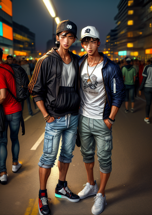 #digitalart #characterdesign #portrait #digitalpainting #malecharacter #photography #fashionportrait #moodboard #streetfashion #urbanstyle #youthculture #denimshorts #aiart #fashionduo #digitalfashion #aicharacter #cinematiclighting #aigenerated #citynightvibes #contrastfit