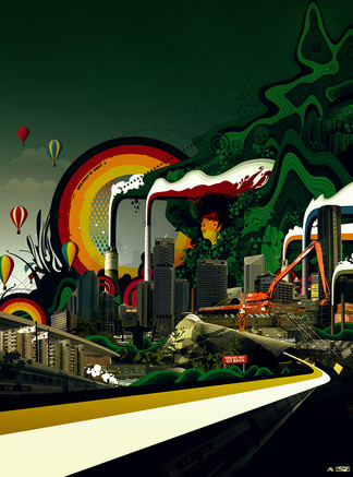 pretty awesome |9.2/10| good job...and how did you do this...photoshop?? did you draw those pill looking shapes or what??? great job though