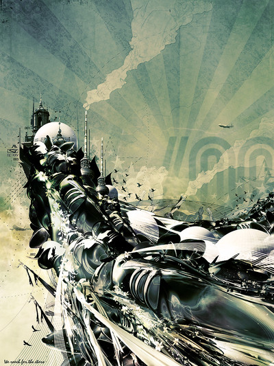 I love how you've interpreted your message into the piece and made it so clear. The use of colors is wonderful. I love how you've made the top like space and the bottom how we see the sky here on the earth. Fantastic effects as well.