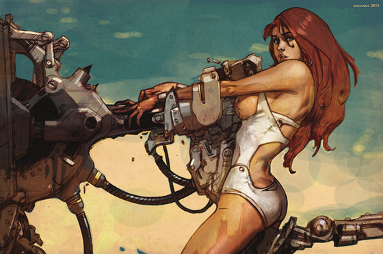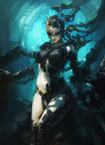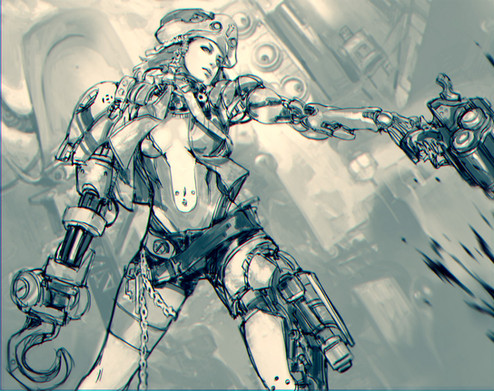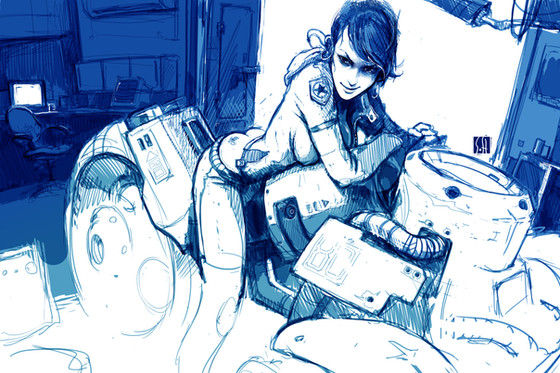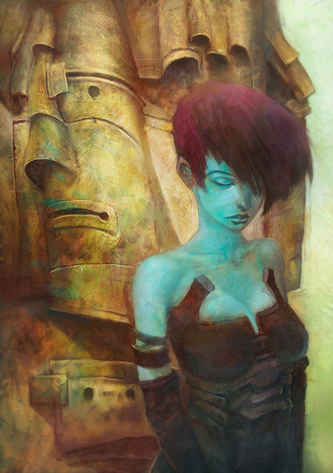 This is awesome. Love how you're mixing dark/light & hard/soft elements. Great expression on her face too.