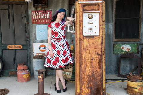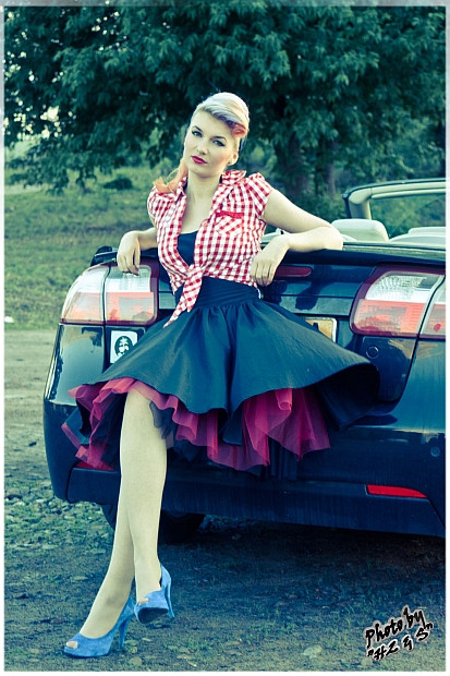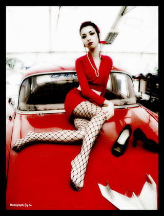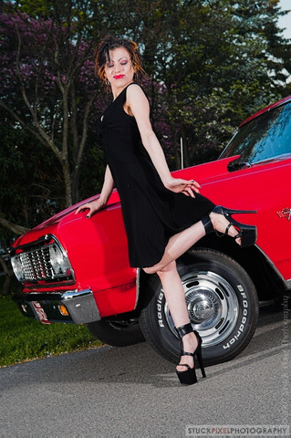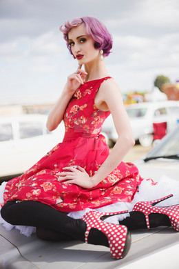 First off, I love the purple hair. My favorite color... I'm enjoying your pinup girl photos. I love your take on pinup modeling. You're able to maintain the classic demure allure of pinup art of the 40's and 50's and add in you're own confident, sensual attitude that gives the shots a modern flair. I hope you do more of these pinup shoots in the future