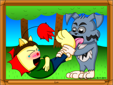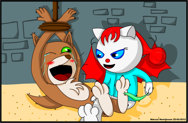 Reason why an alarm clock is betterPeanut wanted to give back at Tailz because she took her sleeping pillow, by giving her an unexpected wake up call. But it became a bit to unexpected for poor Tailz to handle... lets just say she jumped to high by the shock. But Peanuts's task was to scare so she looks rather pleased anyway