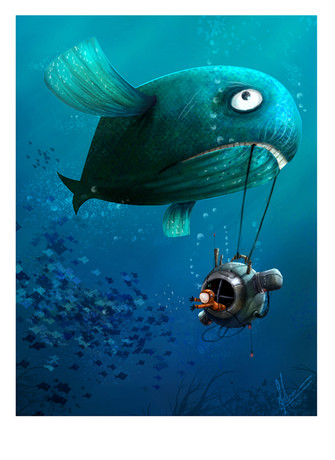 That's an awesome, Awesome looking fish! He doesn't look too happy though. I love the details like all those balloons and those people standing around. I also really like those two guys in the foreground for some reason, they look funny.
