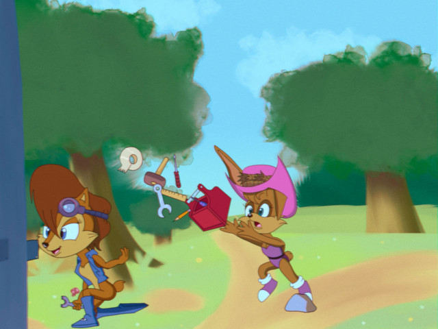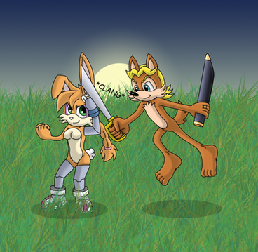 #antoine #bare #battle #bunnie #combat #couple #fight #forest #love #meadow #mobian #naked #practice #romance #stripping #sword #training #bunnie_rabbot #archie_comics #sonic_archie #antoine_dcoolette #au_naturale #bunnie_dcoolette