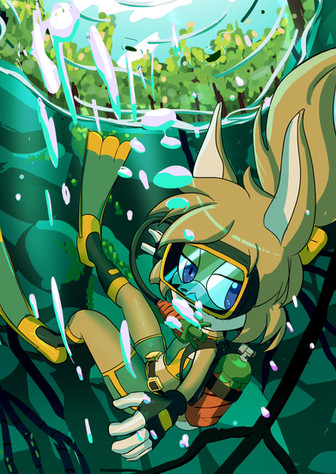 #clone #mobian #ocean #ruby #swim #swimming #swimsuit #underwater #wolf #sonic_oc #deep_water #whisper_the_wolf