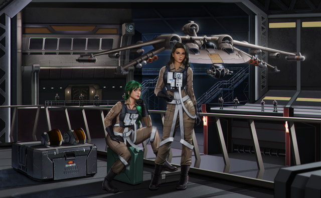 Sergeant Matilda "Matty" Reese and Sergeant Lizzy Aldana, two Koensayr Manufacturing BTL-S8 K-Wing gunners, temporarily-assigned from Orange Squadron to Striker Squadron of New Republic Starfighter Corps' Special Missions Command.