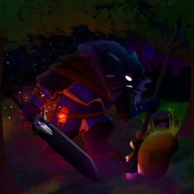 Here we have Warren, clashing with some kind of massive undead rabbit warrior, who blocks out what little light comes from the world above with his imposing figure.