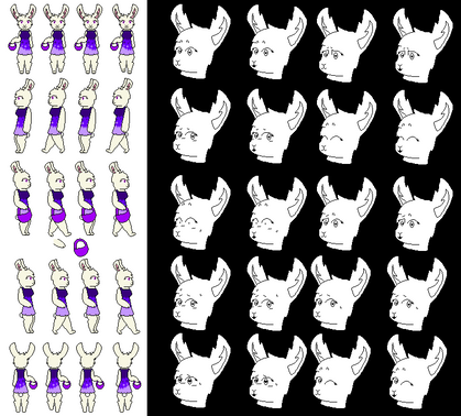 Feel free to use this pixel bunny for your own animated ends!It includes a walk sprite horizontally for eight different angles.