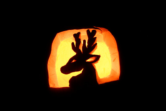 I turned off all lights so the candle inside caused a backlighting effect