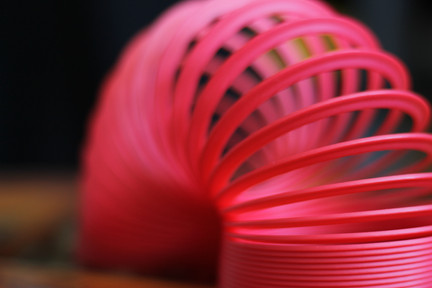This is a great shot, indeed. A slinky can amuse me for hours. What is interesting, is that life is so precious, and can get so tangled up if you aren't careful, much like the slinky. Also, if you put it at the top of a steep staircase, it has a tendancy to whiz down, and tumble, whereas, if you put it on less of an incline, it moves much slower, with less of a risk of getting all jumbled. I was the master of getting them untangled when I was younger. It is my personality, to work until my fingers are bleeding, to bring harmony back to a chaotic situation. Some people would rather give up, and just beg for a new slinky. Not me, it was my special slinky, and I would do all I could to preserve it's fluidity.
