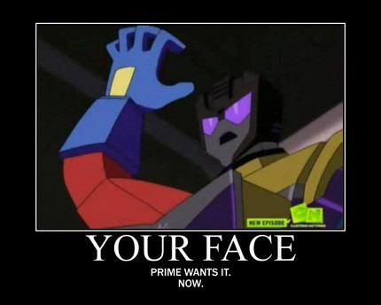Once again, it ws the expression on his face that prompted me to do this. I am a Starscream fangirl, I just like making fun of everyone.TF:A, Starscream's insanity and screencaps belong to Hasbro
