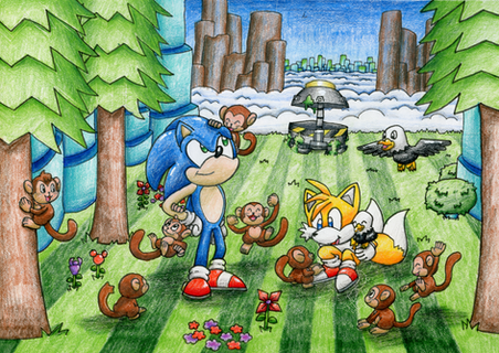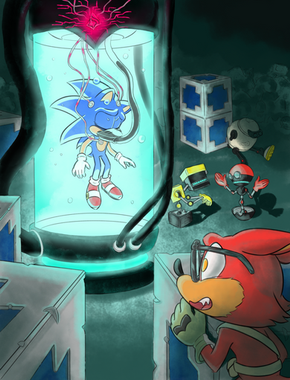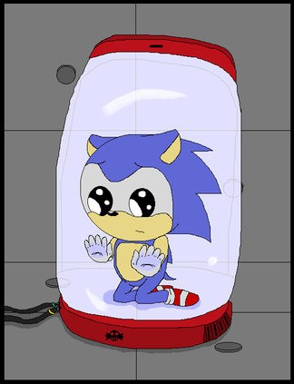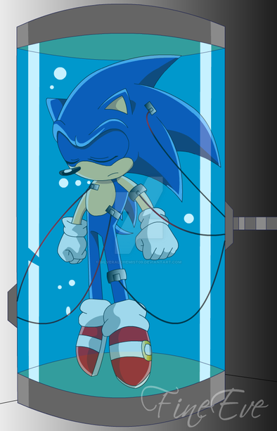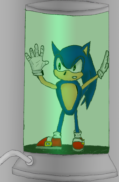 This pic is based on a silly fan-theory that says Sonic is the ultimate lifeform, or at least part of the project. This theory is not true of many reasons, but its fun to come up with why this theory may be plausible.My take on it is that Sonic was made before Shadow and was something like a prototype. He was made differently than Shadow in that he was made to grow' naturally' instead of being immediately grown up as a method to develop a cure for NIDS. Something happened to Sonic that caused him to be ejected to Mobius/Earth and be in stasis until someone found him about 50 years later. From that point, Sonic grew up as an orphan on Christmas island.