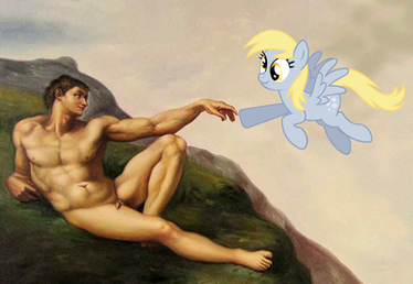 LezliDax was having a competition over on www.ukofequestria.co.uk to draw her OC, Strange Noodle, and this was my entry.I loved her concept, a unicorn cousin of Derpy who isn't very good with magic and likes physics. After that the idea to draw this came almost immediately. If a pegasus can destroy the town hall, what carnage can a slightly erratic unicorn produce!
