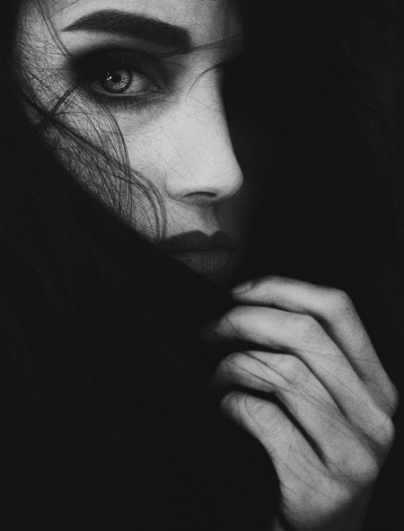 I love the wispiness of the drapery and the model's eyes. She is stunning.