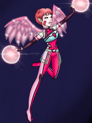 Featuring my lyoko design for Jeremie!I just wanted to try rendering Aelita's angel wings in 2D, and try to make her energy fields closer to what they look like in Lyoko instead of on Replikas. This was super fun to do! I used a background from the show, one of the Amazon Replika. :3