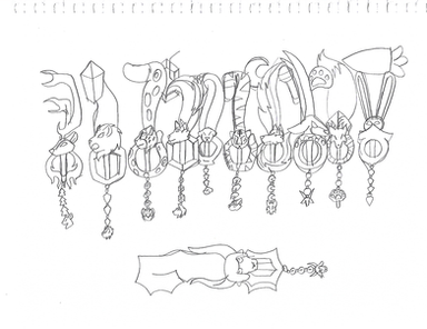 A keyblades designed for 2018's Inktober challenge under the prompt "chicken".So I really want to take this challenge kinda seriously...but like... how?! How am I supposed to seriously make a keyblade inspired by "roasted" and "chicken"?! What's next?! Ice cream?! OH WAIT THAT KEYBLADE ACTUALLY EXISTS!!!