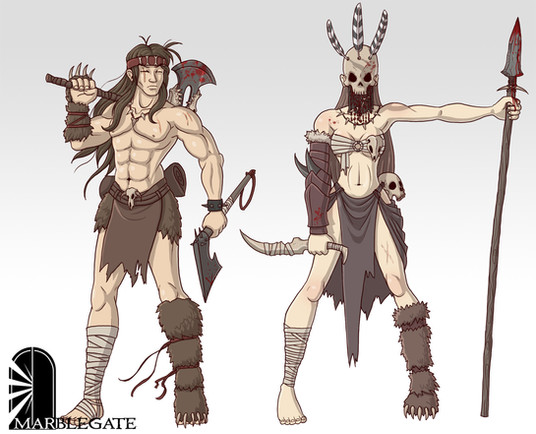 jaja en si, tenes razon, pasa que no son cavernicolas, son mas bien una onda tarzan, y los cinturones no son ni hechos por ellos, y sip los cuchillos son de hueso, con un mango de cuero atado asi a lo mas rustico que se te ocurra, muchas gracias por pasarte saludos!
