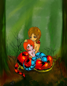 Very cute! Nice job. BUT NO FAIR!!! (Yet, ironic.) Similar situation I had planned for one of my NagaTales after I introduce the Dryder character (to the Chimera-booby naga group)...ahahha (I'll still do it though). ^^ GET OUT OF MY HEAD!!