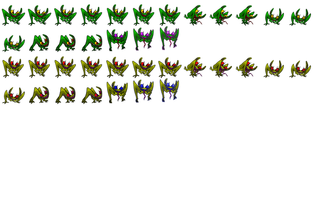 This was edited from the original monsters found already in the maker's folder. All I did was I copied pasted on (I think it was nine different layers plus another for the black one...?) But these are for the special add on in the game. Each are obtained through different items. Used a special tutorial for that which will be posted up soon.