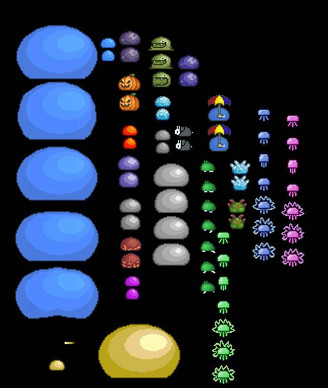This was edited from the original monsters found already in the maker's folder. All I did was I copied pasted on (I think it was nine different layers plus another for the black one...?) But these are for the special add on in the game. Each are obtained through different items. Used a special tutorial for that which will be posted up soon. The edit is for the corresponding image found here...click me.